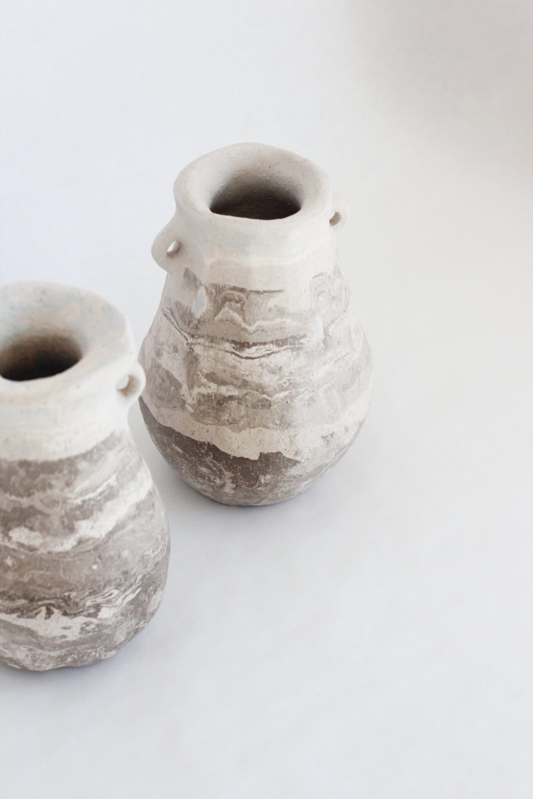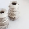 This vase is crafted from a blend of different clays using the traditional coil-building technique.