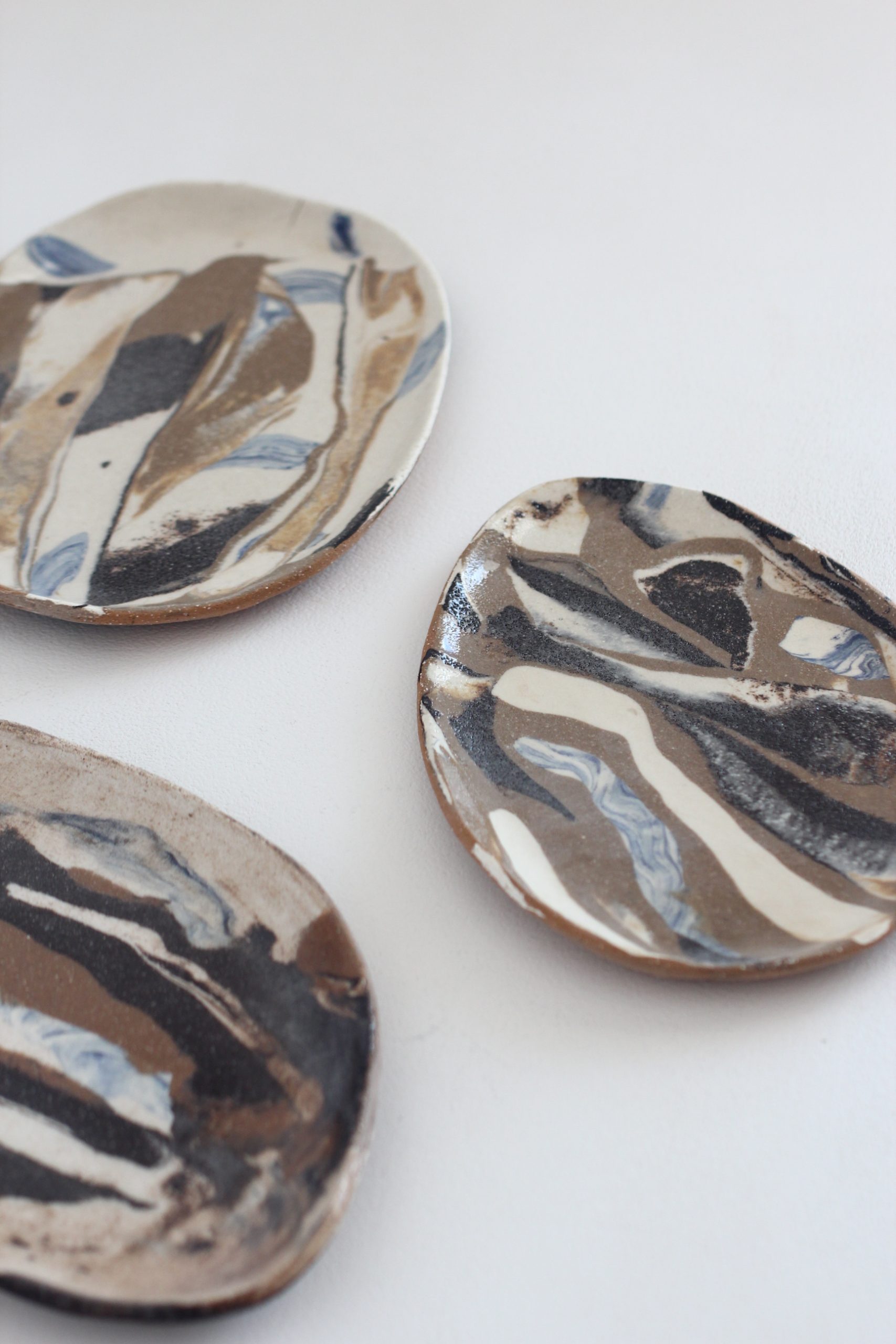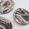 Plate crafted from a variety of clays, each with unique textures and colors, finished with a clear glaze on top.